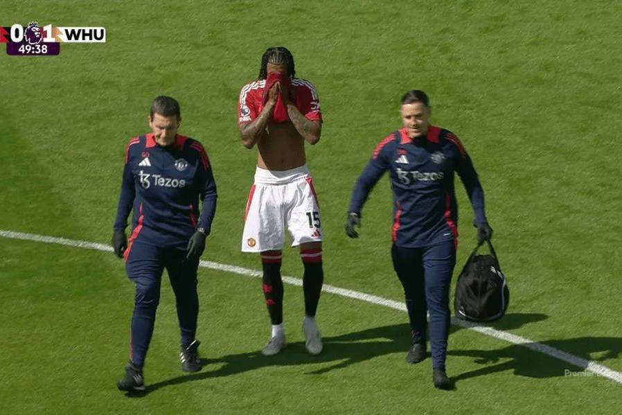 易边再战,0-1落后的曼联遭受更大打击,主力中卫莱尼·约罗受伤,不得不离开球场。他当场落泪,用球衣蒙住自己的脸。马奎尔、加纳乔和帕特里克·多尔古都在这位19岁的法国球员走向更衣室时安慰他。